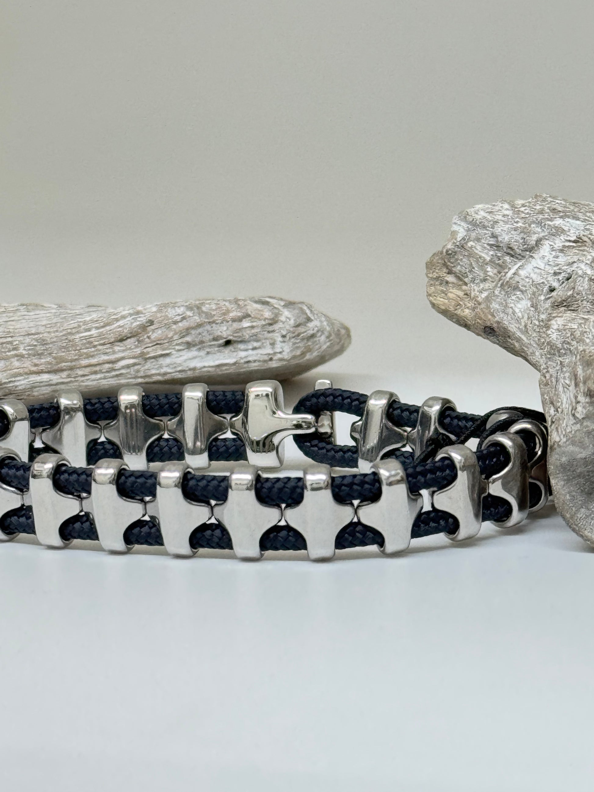 Le Bold Bob est équipé de boucliers distinctifs (11 mm) et d'un fermoir en T reconnaissable en acier inoxydable de qualité marine le plus résistant. Bob est également doté de la meilleure corde marine (3 mm) disponible, pour un look nautique élégant.