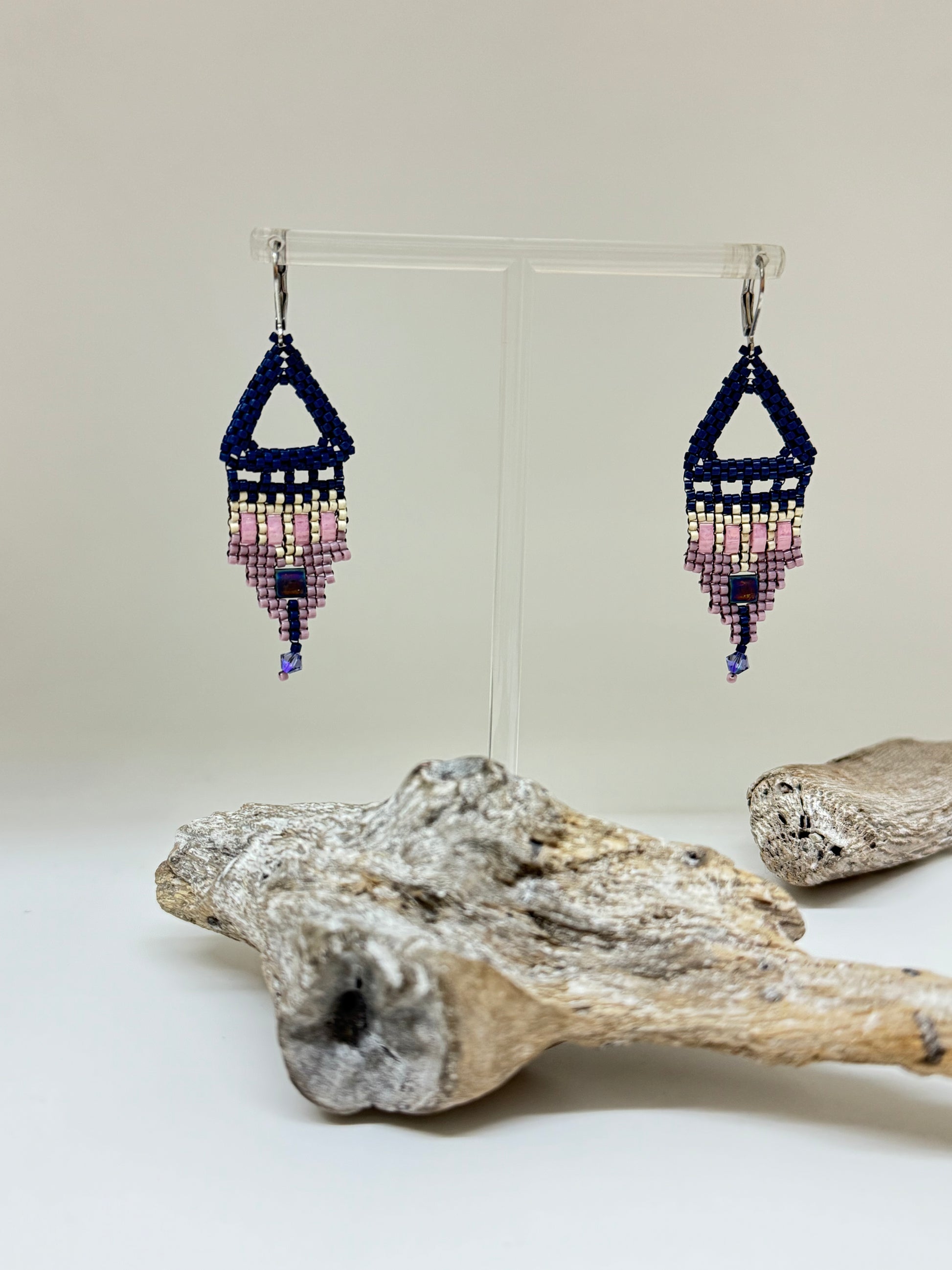 Boucles d'oreille Miyuki fait main par Hélène Gagnon de Montréal.