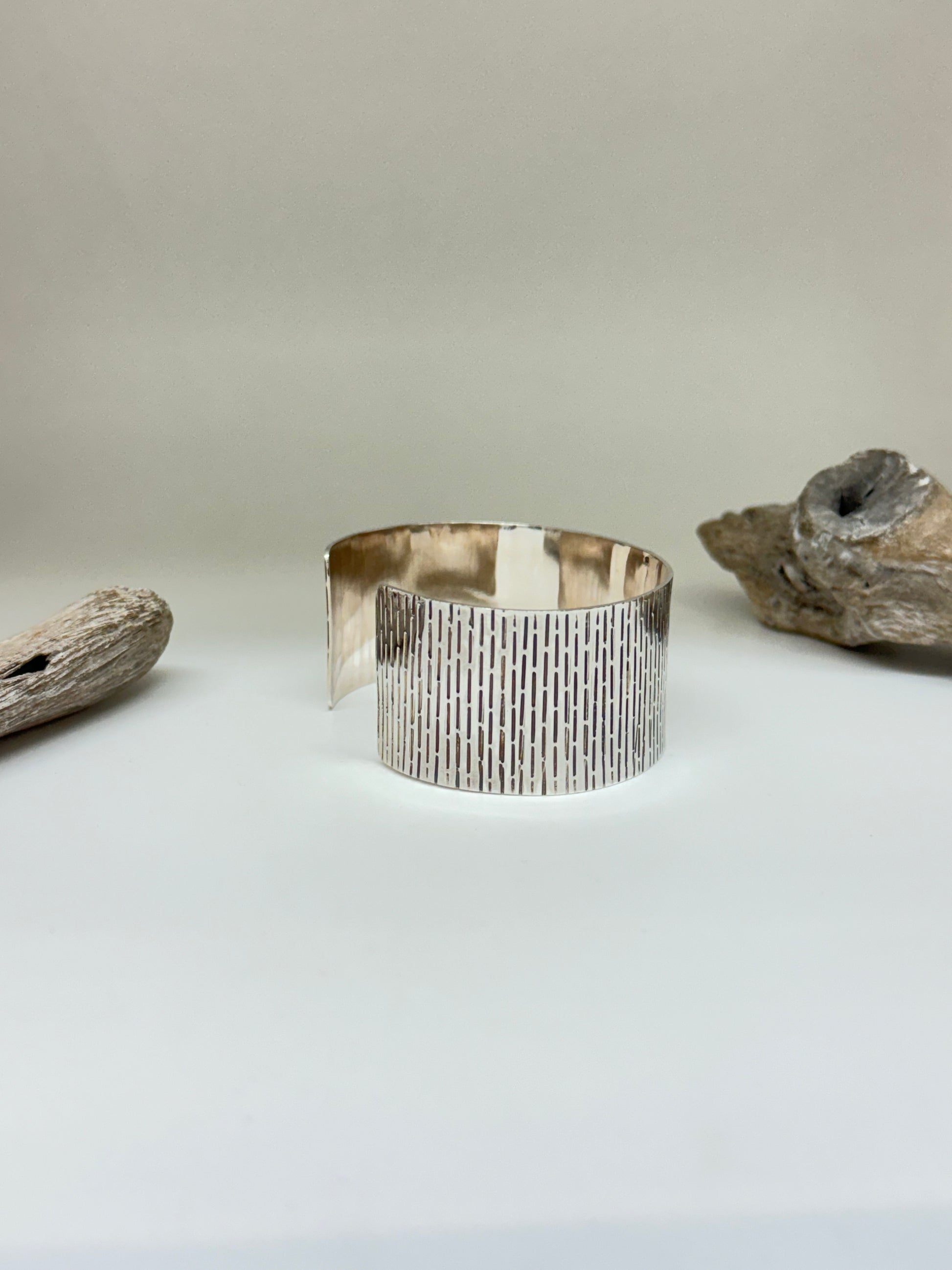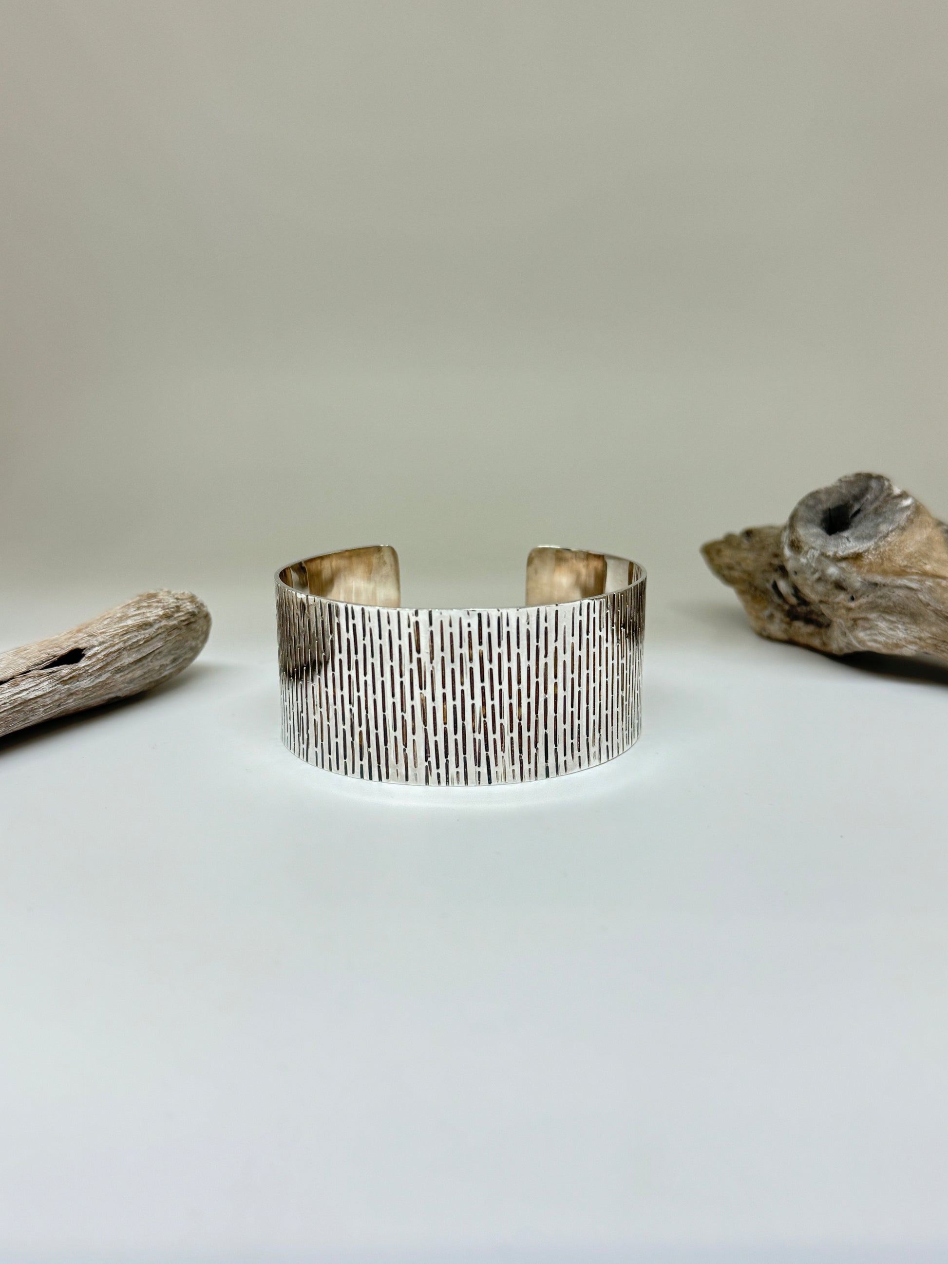 Bracelet Cuff rayé en Argent 925 Fait par des Artisans de l’Indonésie. Cuff bracelet
