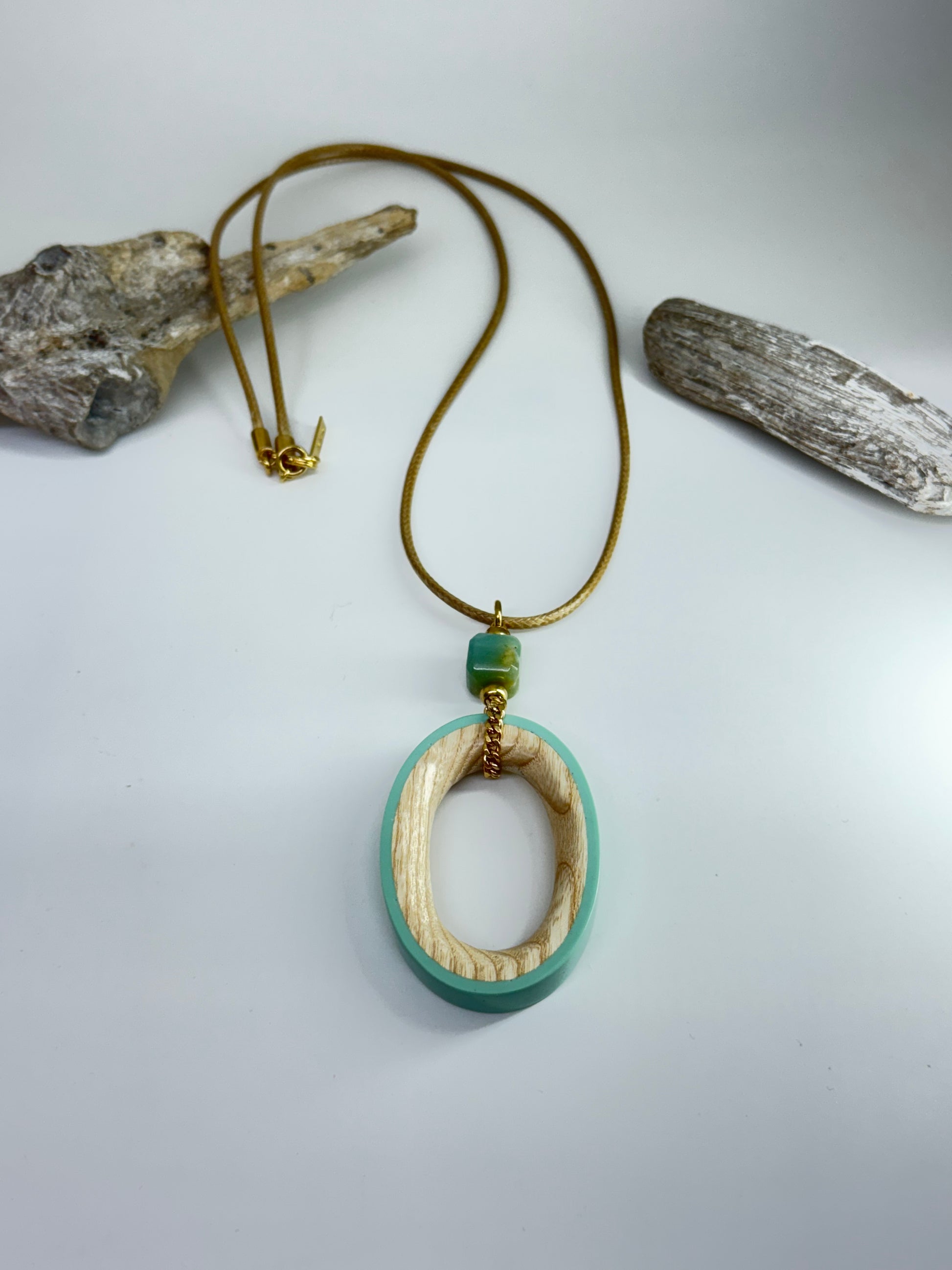 Collier long pendentif oval Collection Nature Fait main en France Mississippi 15-43371
