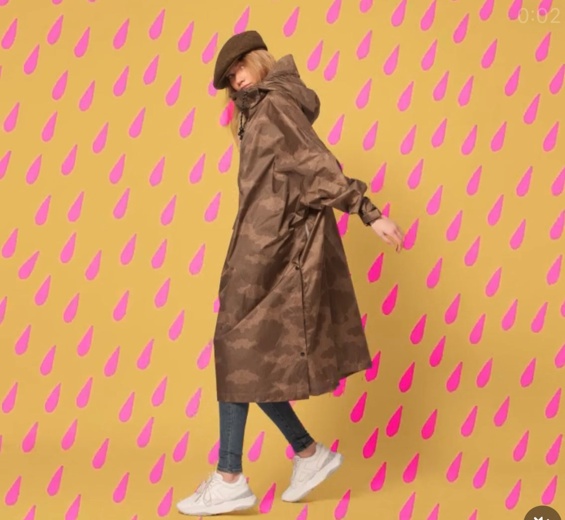 Sans nuages, nous n'avons pas de pluie . Le poncho de pluie Clouds célèbre les jours nuageux en utilisant une technique d'impression japonaise traditionnelle qui crée un motif nuageux complexe. Cet imprimé bicolore de pois dorés et marron forme un magnifique design apaisant qui fait de chaque jour de pluie quelque chose à espérer.