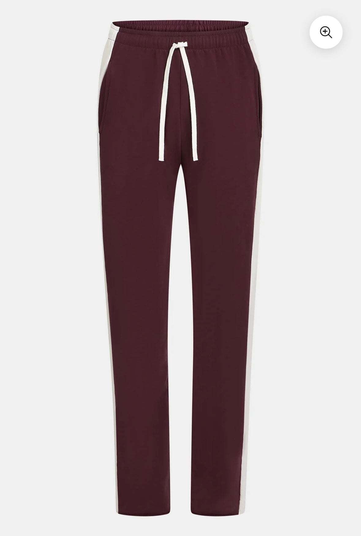 Rehaussez votre look décontracté avec ce pantalon aubergine coupe décontractée, orné de bandes latérales écrues contrastantes pour un look sport-chic. Doté d'une taille élastiquée et d'un cordon de serrage, il offre un confort optimal tout au long de la journée, tout en conservant un style moderne et décontracté.