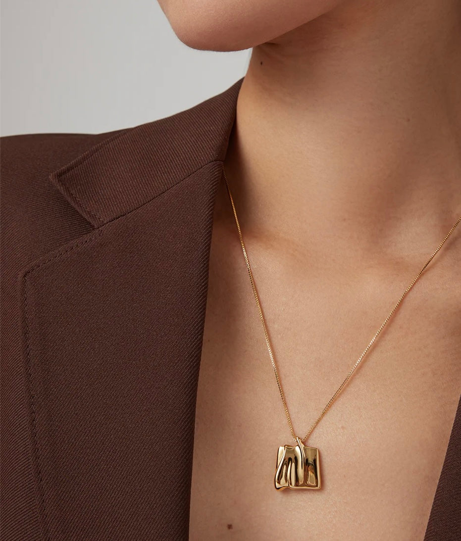 Reflétant une dune de sable façonnée par les vents naturels, ce pendentif carré organique glisse sur une délicate chaîne vénitienne en or. Ce modèle est doté d'un anneau de raccourcissement, permettant un réglage facile et une taille de 50,8 cm ou 55,9 cm. Finition en or 14 carats poli.